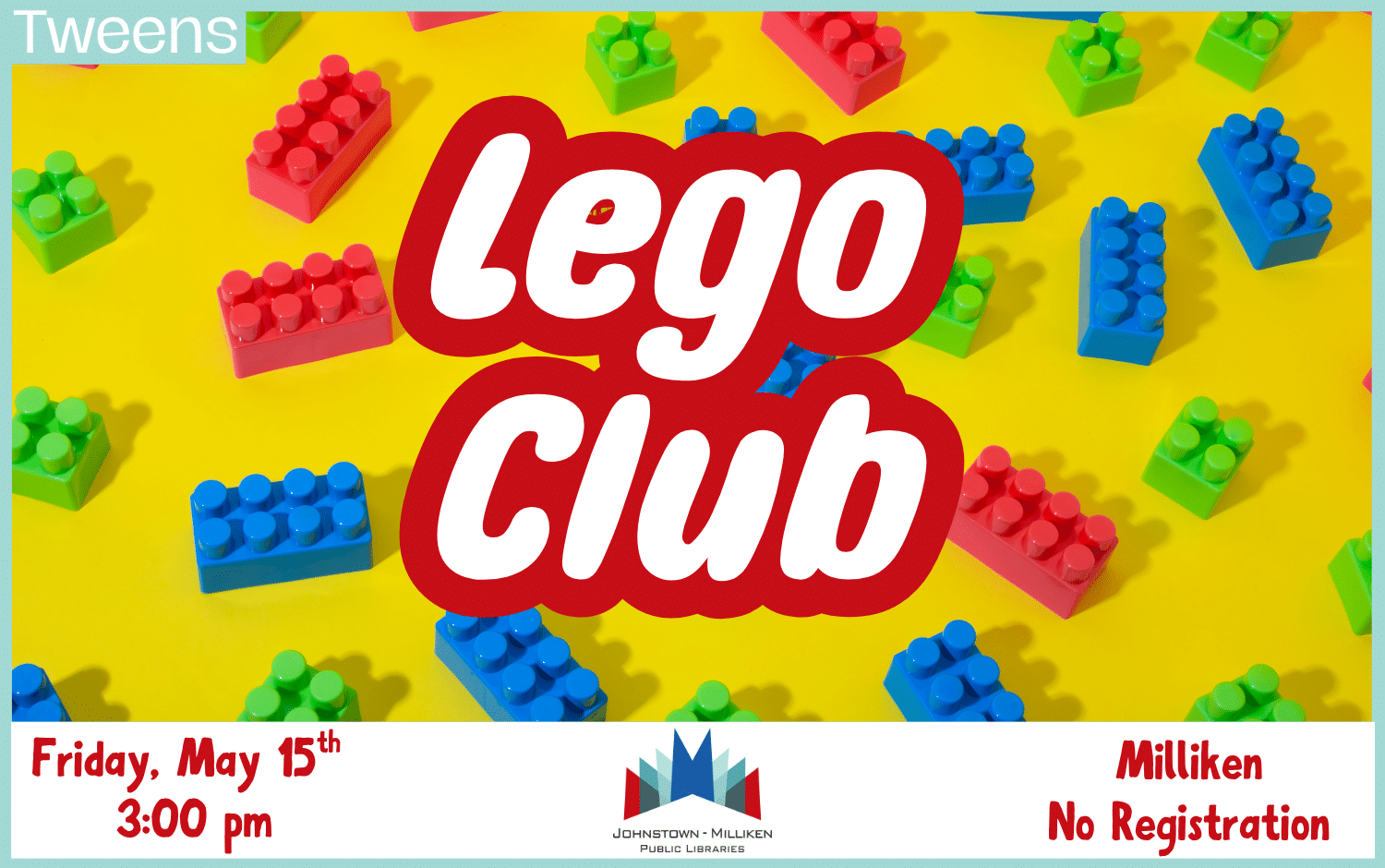 Build, create, and challenge yourself at the Milliken Public Library LEGO Club! Follow a challenge or design your own creation.