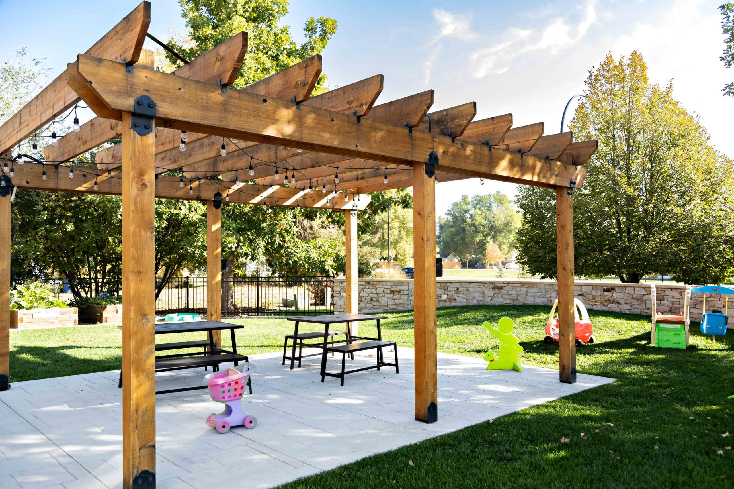 During our warmer months, enjoy playing outside next to our beautiful garden. All produce grown in our garden is donated to the Milliken food pantry.
